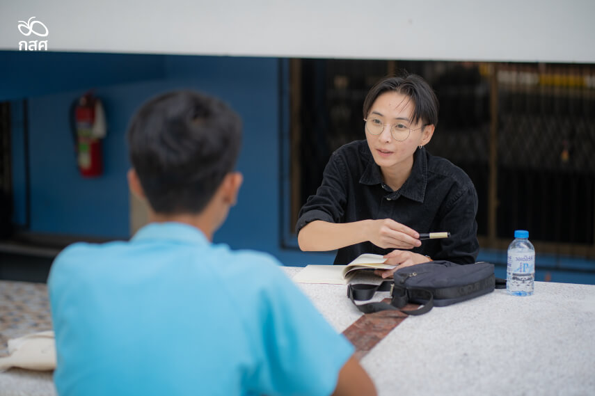 “การศึกษายืดหยุ่นเป็นรูปแบบการศึกษาที่ดีมากๆ เพราะช่วยเพิ่มโอกาสทางการศึกษาให้เด็กที่บ้านยากจนหรือมีเหตุจำเป็น เช่น ไม่มีเวลาไปนั่งเรียนหนังสือ ต้องทำงาน ต้องเลี้ยงดูคนในครอบครัว ถ้าตอนกลางวันเขาไปทำงาน ตอนเย็นเขาอาจจะกลับมาทำใบงานส่งครู ตรงนี้ช่วยเพิ่มโอกาสทางการศึกษาและการทำงานให้เด็กในอนาคตได้” ครูปิยพรพูดถึงการศึกษายืดหยุ่น นโยบายที่ช่วยให้เด็กจำนวนมากยังอยู่ในระบบการศึกษาต่อได้ แม้มีเหตุจำเป็นในชีวิตที่ไม่เอื้อต่อการเรียน