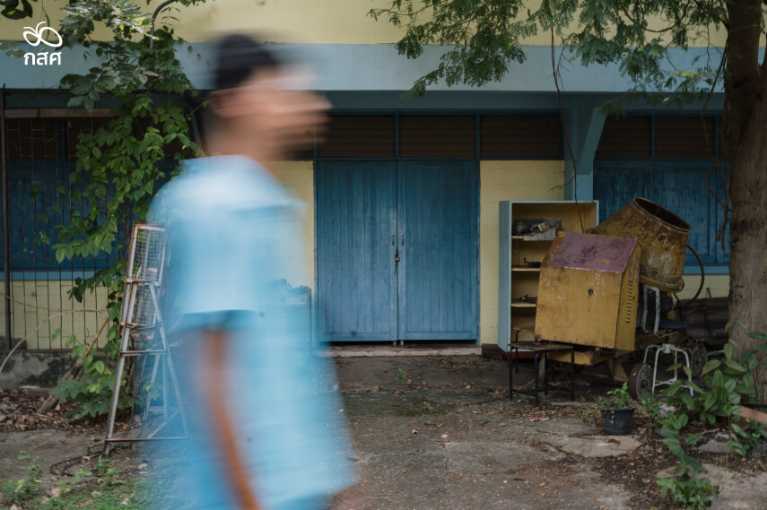 “สาเหตุมาจากหลายอย่าง หนึ่ง ภาวะทางเศรษฐกิจของครอบครัว บางคนไม่มีเงินค่าเดินทางมาเรียน บางคนบ้านอยู่ไกล 20-30 กิโลเมตร ไม่สามารถเดินทางมาเรียนได้ ตรงส่วนนี้เราก็ต้องไปหาเด็กที่บ้านด้วย เราทำโครงการ ‘เอาการศึกษาไปหาน้อง’ และโครงการ ‘พาน้องกลับมาเรียน’