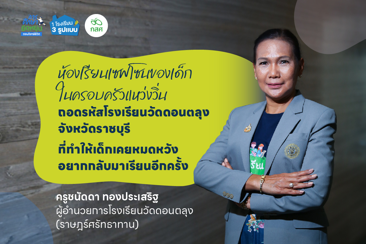 | โรงเรียนวัดดอนตลุง (ราษฎร์ศรัทธาทาน) จังหวัดราชบุรี เริ่มต้นจากการช่วยเด็กเป็นรายกรณี ก่อนต่อยอดเป็นระบบการศึกษายืดหยุ่น “1 โรงเรียน 3 รูปแบบ” ตั้งแต่ปี 2565 โมเดลนี้เปิดโอกาสให้เด็กจากครอบครัวเปราะบางหรือมีข้อจำกัดด้านเวลา ยังสามารถเรียนต่อและจบการศึกษาได้อย่างเป็นรูปธรรม หากโรงเรียนหรือครูต้องการข้อมูล หรือคำแนะนำเชิงปฏิบัติในการจัดการศึกษายืดหยุ่นสามารถปรึกษาแบบตัวต่อตัวได้ที่ LINE OA กสศ.การศึกษายืดหยุ่น คลิก |