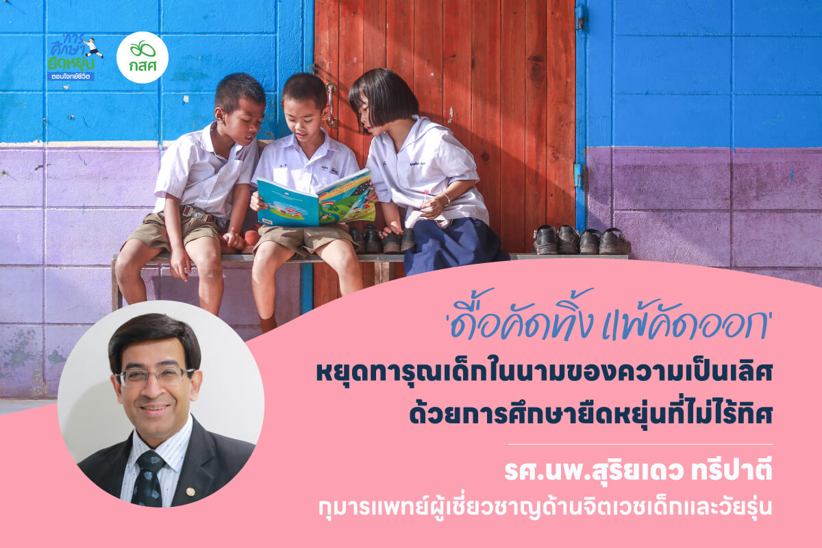 ด้วยเหตุนี้ กองทุนเพื่อความเสมอภาคทางการศึกษา (กสศ.) จึงนัดหมายสนทนากับ ‘หมอเดว’ เพื่อกลับไปตั้งหลักคิดกันใหม่ว่า การศึกษายืดหยุ่นในความหมายที่ไม่ทำร้ายเด็ก ควรหน้าตาเป็นอย่างไร เพื่อให้เด็กอยู่รอดทั้งทางกาย ใจ และสังคม โดยไม่ถูกปล่อยให้แบกรับผลลัพธ์ของการตัดสินใจที่เกินวัยเพียงลำพัง