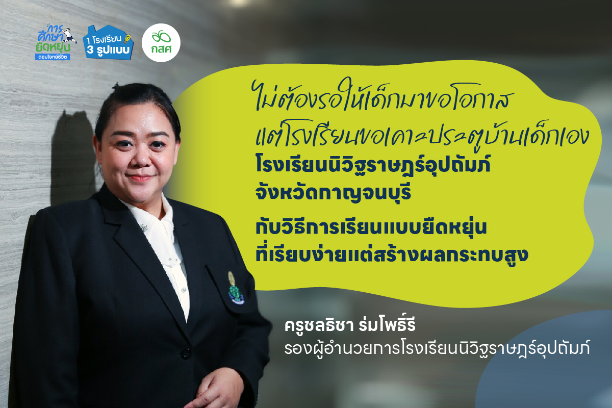 | โรงเรียนนิวิฐราษฎร์อุปถัมภ์ จังหวัดกาญจนบุรี พัฒนาการเรียนยืดหยุ่นจากปัญหาจริงในพื้นที่มานานกว่า 20 ปี เด็กเรียนครบหลักสูตร แต่เลือกวิธี เวลา และการประเมินที่สอดคล้องกับชีวิต เพื่อให้เด็กได้รับโอกาสเต็มที่ หากโรงเรียนหรือครูต้องการข้อมูล หรือคำแนะนำเชิงปฏิบัติในการจัดการศึกษายืดหยุ่นสามารถปรึกษาแบบตัวต่อตัวได้ที่ LINE OA กสศ.การศึกษายืดหยุ่น คลิก |