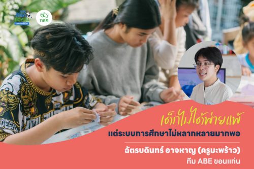กิจกรรม ข่าวความเคลื่อนไหว เด็กไม่ได้พ่ายแพ้ แต่ระบบการศึกษาไม่หลากหลายมากพอ : ฉัตรบดินทร์ อาจหาญ ทีม ABE ขอนแก่น 26 ม.ค. 6912 ก.พ. 26 ABE ขอนแก่น จันทิมาพร ชีวะสวัสดิ์ ฉัตรบดินทร์ อาจหาญ